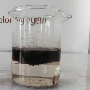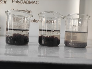 左一為客戶自己添加藥劑試驗(yàn)的效果圖。 圖二是加入我司脫色劑后的絮凝效果圖。